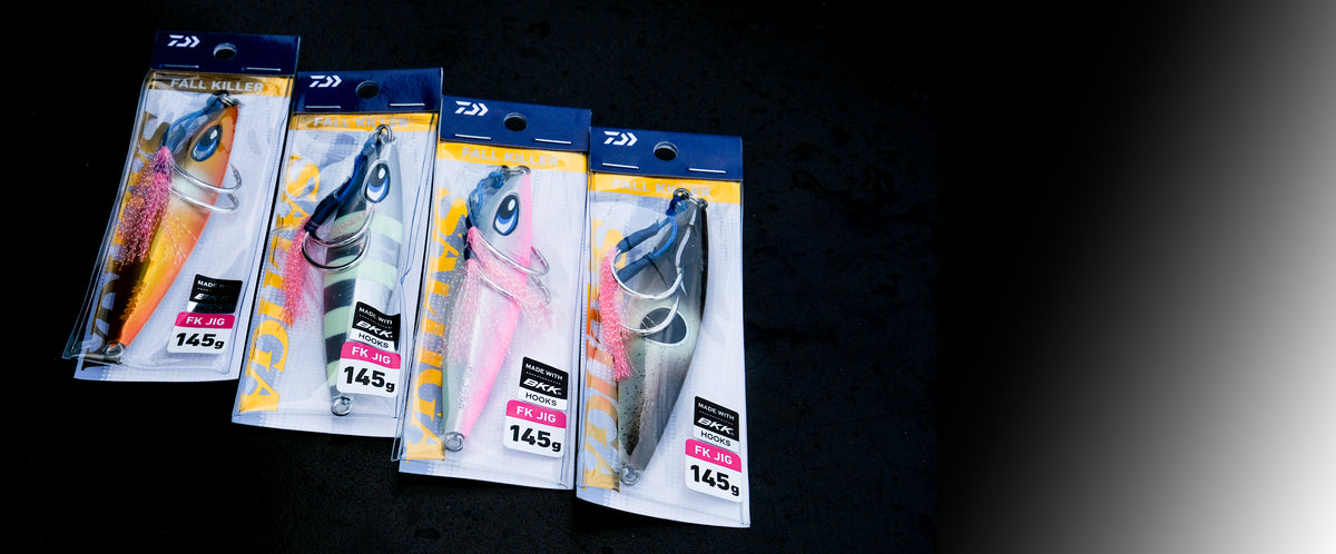 The FK Jig design is centered around a one-pitch jerk action with an optimised flashing action on the fall. This specialised lure mimics an injured baitfish's descent, detached from bait balls, to achieve a flashing fall with perfect balance and speed.